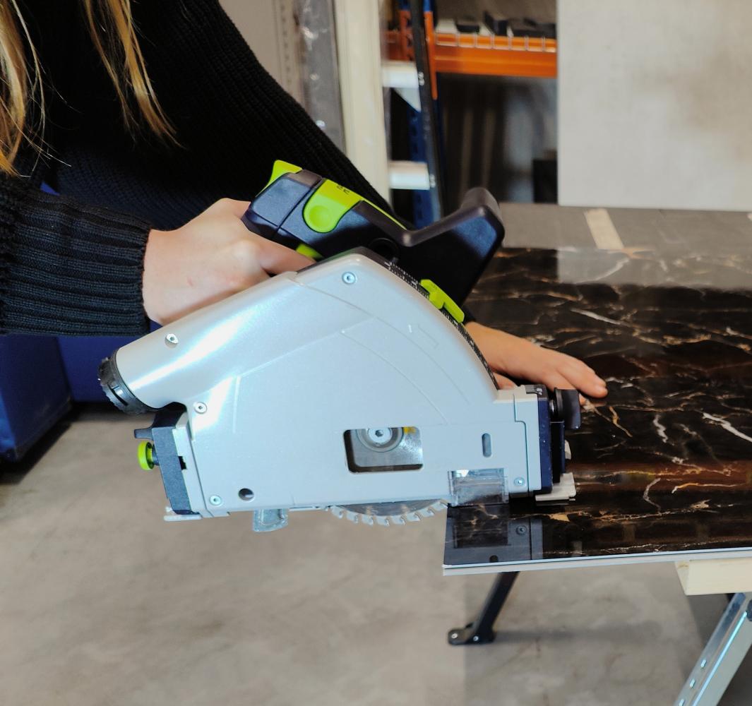 De eerder genoemde tand en groefverbinding zorgt voor een kliksysteem die eenvoudig gelijmd op de muur kan worden aangebracht. De platen kunnen met een handzaag, cirkelzaag of eventueel stanleymes op maat gezaagd worden. In de blog Hoe je zelf Masq-wandtegels en -panelen installeert vind je een uitgebreidere handleiding om Masq te installeren.